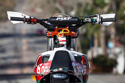 A moto trouxe peças e componentes exclusivos de alta qualidade e performance, testados e aprovados no Six Days. Destacam-se nessa edição o escape completo Belparts, coroa BMS IronRocket de aço microligado, protetor traseiro de disco BMS Racing, pedaleiras em alumínio BMS Drop, protetores de mão e motor Biker, guia traseiro da corrente Biker, farol de led MXF Special Parts, discos de freio dianteiro flutuante e traseiro sólido Parts 57, respiro de tanque BMS 360, expansor do reservatório de freio traseiro BMS, ponta de pedal de freio BMS com cabo de segurança e gráficos Renova Grafix Six Days Portugal.